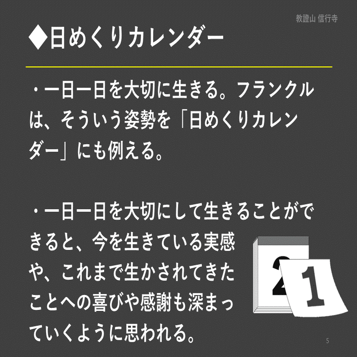フランクルは、そういう姿勢を「日めくりカレンダー」にも例えています。