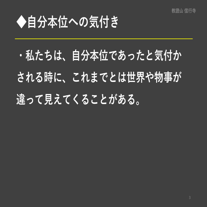 私たちは、自分本位であったと気付かされる時に、これまでとは世界や物事が違って見えてくることがあります。