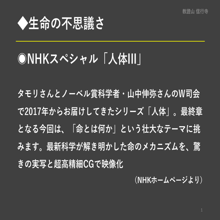 私も今回、シリーズ人体の新しい番組と過去の番組も見ましたが、「生命とは本当に不思議だな」と感じました。