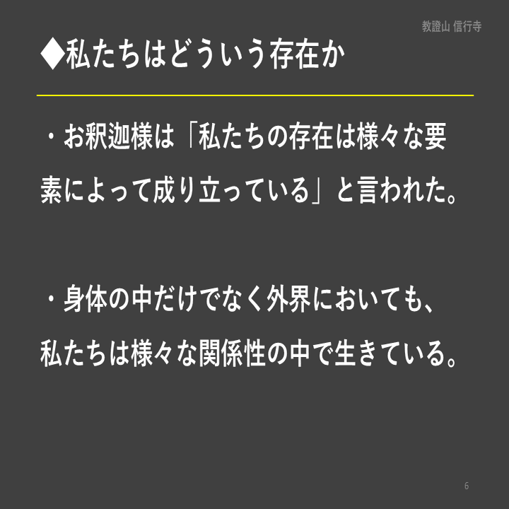 仏教の開祖 お釈迦様は、「私たちの存在は様々な要素によって成り立っている」と言われました。