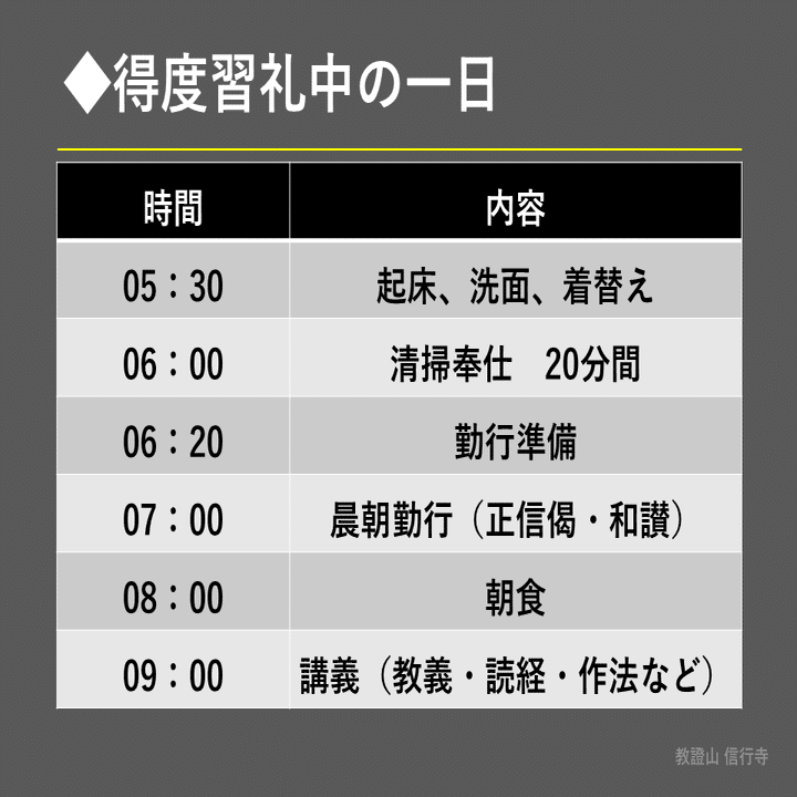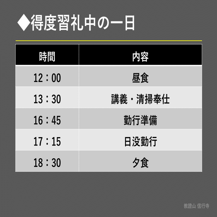 ですが、今回は「得度習礼」の一日のスケジュールをご紹介することがメインですので、それらは割愛します。